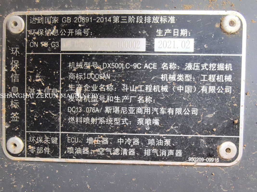 について2021年 ドーサンDX500LC-9C高生産環境のために設計された強力な50トン級の水力掘削機です.7857 労働時間この機械は,堅調な動作状態で,要求の高い仕事に対して信頼性の高いパフォーマンスを提供しています.